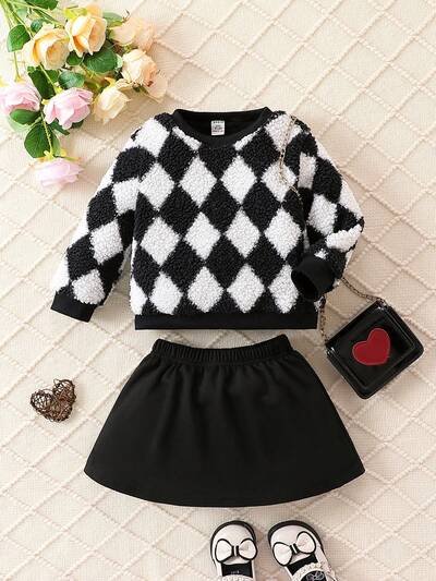 Baby Girl Argyle Pattern Sweatshirt & Skirt-60%
