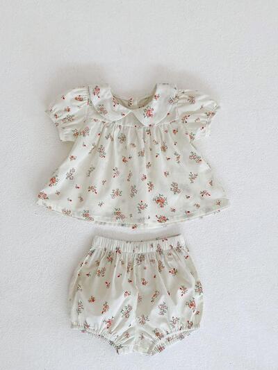 Summer Baby Girl Clothing Cute Peter Pan Collar 2pcs Flower Print Fashion Outfit For Infants, Top With Pants-42%