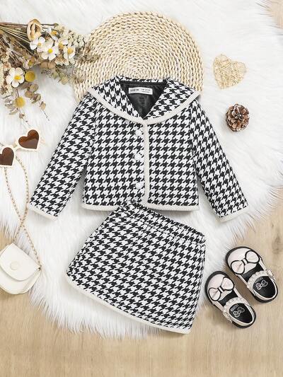 Baby Girl Houndstooth Print Jacket & Skirt-60%