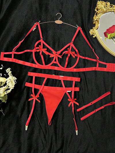 Women'S Sexy Lingerie Set With Red Bowknot Decoration-62%