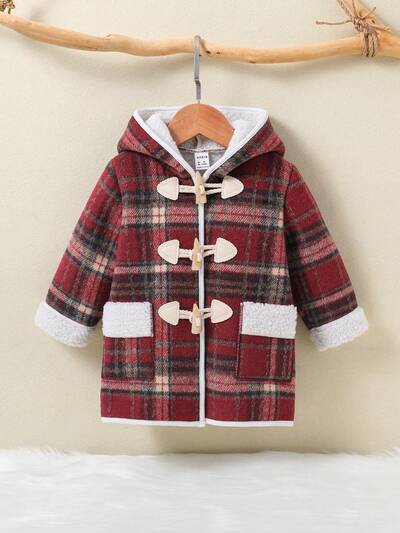 Baby Girl Tartan Print Teddy Lined Duffle Hooded Coat-60%