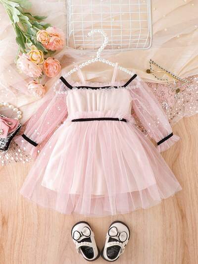 Baby Girl Elegant Court Style Mesh Dress, Summer