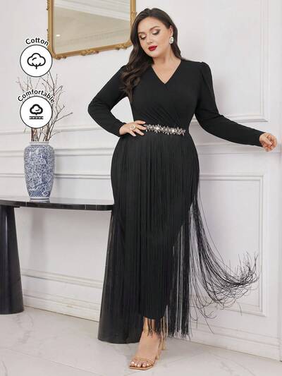 Plus Size Women's Patchwork Tassel Long Sleeve Arabian Dress,Elegant Evening Party Dress Long Evening Dresses-64%