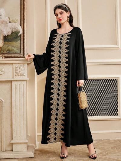 Women's Floral Pattern Flare Sleeve Arabian Dress