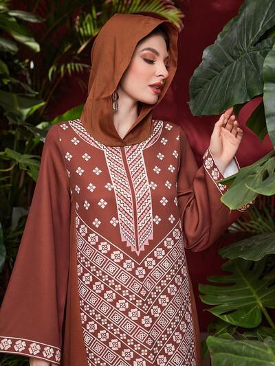 Geometric Printed Hooded Abaya Dress-65%