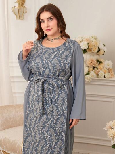 Women's Floral Print & Sequin Patchwork Modest Arabic Style Jalabiya Dress-65%