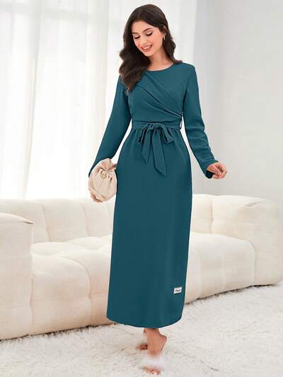 Long Cloak Sleeve Wrap Knot Side Modest Dress-60%