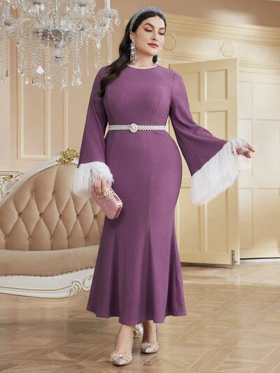Plus Size Women'S Fringed Sleeve Cuff Mermaid Dress Long Evening Dresses-60%