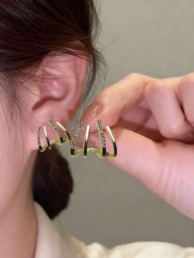 1pc Ladies' Left Ear Metal Leaf & Crystal Beaded Decorated Ear Cuff, Fashionable Personalized For Wedding Brides Royal Halloween