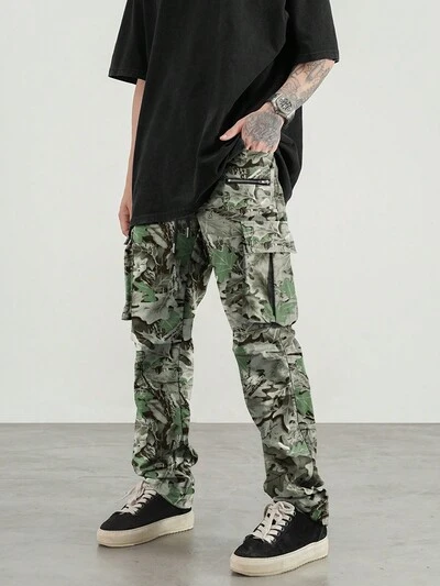 Men's Letter Printed T-Shirt And Cargo Pants Casual Two-Piece Outfit-65%