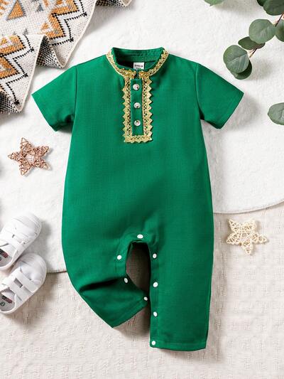 Baby Boy Embroidered Splice Stand Collar Jumpsuit-41%
