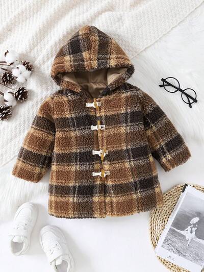Baby Boy Plaid Pattern Hooded Duffle Teddy Coat