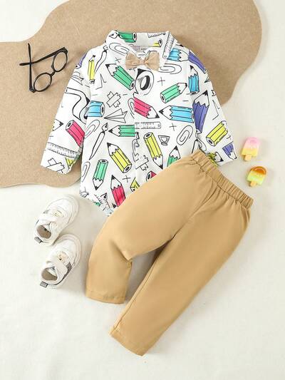 Baby Boys' Cute Cartoon Printed With Solid Color Pants Outfit Set-65%