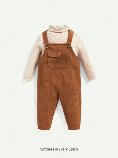 Baby Boy Turtleneck Tee & Pocket Front Overall Jumpsuit