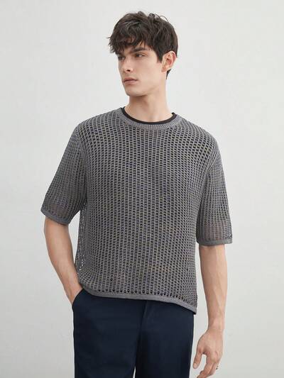 Crochet Men's Knitted Crew Neck Short Sleeve Top For Summer-65%