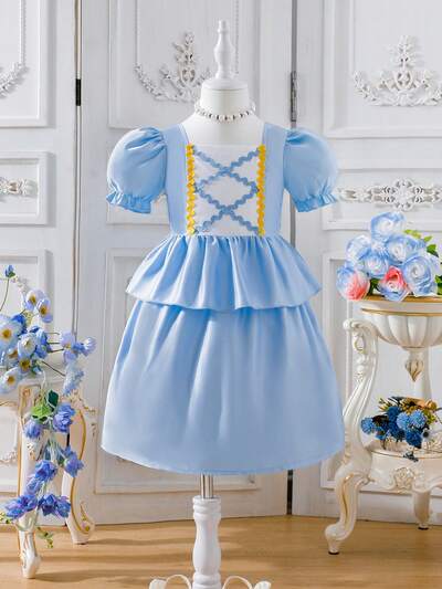 Young Girl Music Festival Casual Academy Style Pleated Splicing Strap Dress Suitable For Daily, Parties, Beach Vacations, Graduation Season, Summer