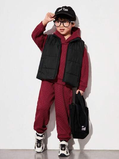 Toddler Boys' Casual Comfortable Hoodie With Twisted Knitting Pattern & Thick -padded Vest & Warmer Trousers-60%