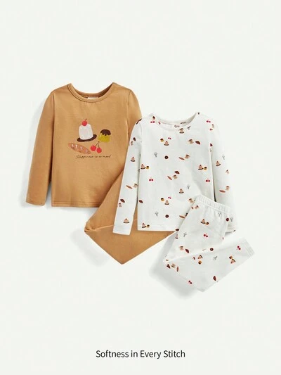 4pcs Baby Girl Snug Fit Pajama Set With Cartoon Pattern, Including Long Sleeve Crewneck Top And Pants-50%