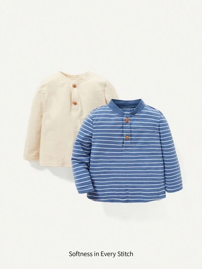 Baby Boy 2pcs Striped Half Button Tee-65%