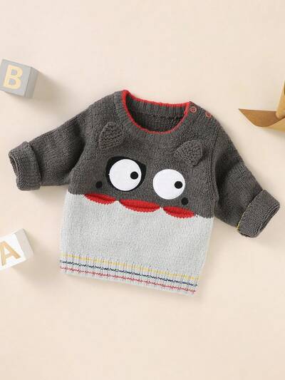 Baby Boy Cartoon Pattern Pocket Patched Sweater