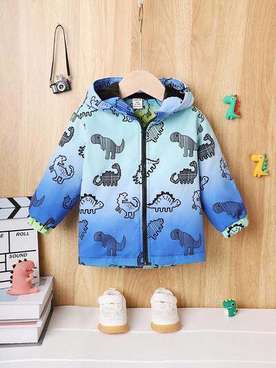 Baby Boy Dinosaur Print Ombre Hooded Coat-60%