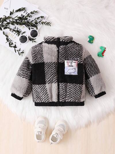 Baby Boy Plaid Print Zip Up Teddy Jacket-65%