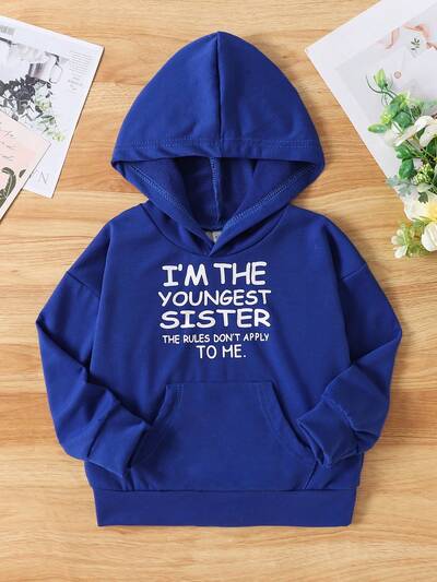 Young Girl's Casual Sporty Hooded Sweatshirt With English Slogan Print For Fall/Winter-47%