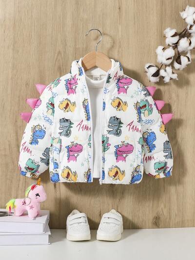 Baby Girl 1pc Letter & Dinosaur Print Zipper Padded Coat-60%