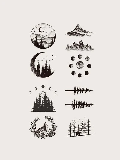 1set/4pcs Waterproof Temporary Tattoo Sticker With Moon Forest Mountain & Black Bear Design, Ideal For Both Men And Women To Wear On Festivals And Parties-53%