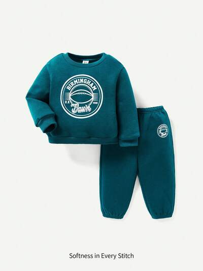 Baby Boy Casual Letter Print Round Neck Sweatshirt And Long Pants Sets-60%