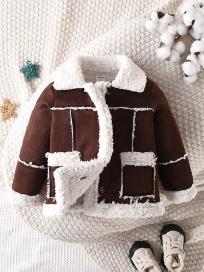 Baby Girl Double Breasted Borg Collar Coat & Hat-60%