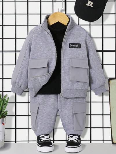 Baby Boy Letter Patched Detail Flap Pocket Jacket & Sweatpants Without Tee-50%