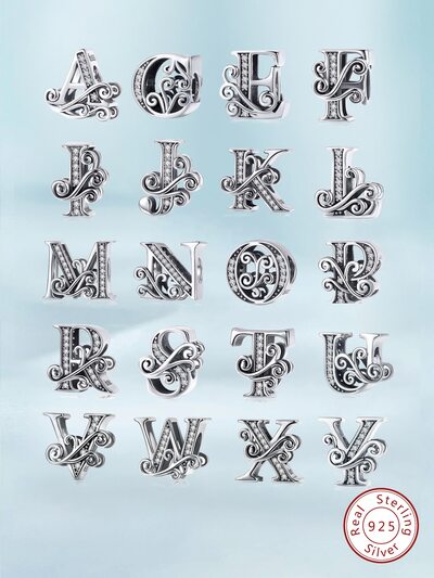 1 Pc Fashionable 925 Silver cubic zirconia 26 Letters Beaded Charm Bead for Women Fit Bracelets Bangles DIY Jewelry Making Anniversary Gift Fine Ladies jewellery