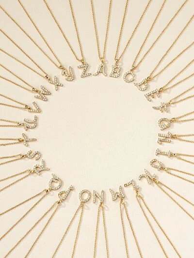 1pc Fashion Copper Rhinestone Decor Letter Pendant Necklace For Women For Decoration Gift Party