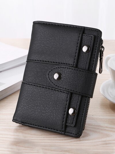 Vintage Women's Short Multi-Card Black Coin With Buckle & Rivets Gift Bag Present For Men Wallet Purse Wallet Small Wallet Men Wallet Leather