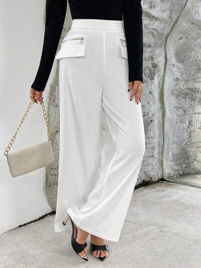 High Waist Flap Detail Wide Leg Pants-25%