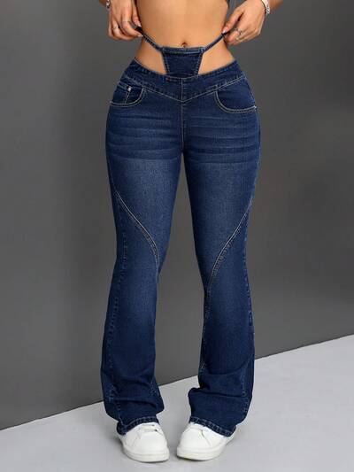 2 In 1 Tight-Fitting Denim Flared Pants-60%