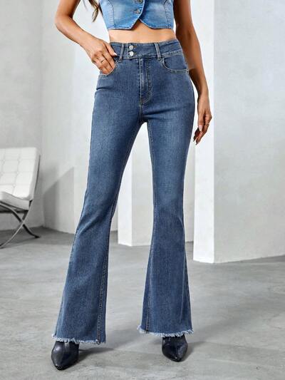 Raw Trim Buckle Front Flare Leg Jeans-65%