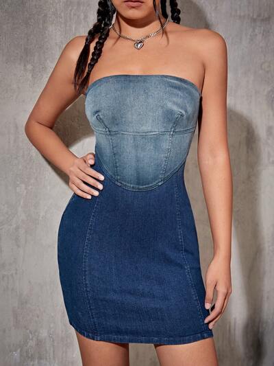 Colorblock Tube Denim Dress-25%
