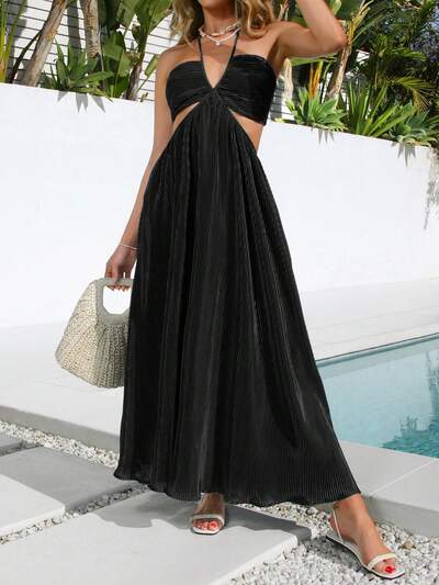 Pleated Fabric Halter Neck Dress-23%