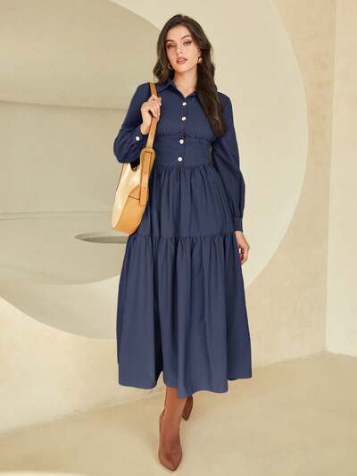 Lantern Sleeve Ruffle Hem Shirt Dress-65%