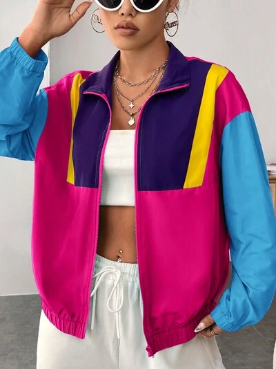 Colorblock Zip Up Drop Shoulder Jacket In Fall/Winter-60%