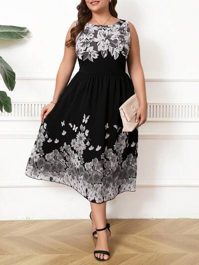 Summer Plus Size Women Fashionable Ditsy Floral Short Sleeve Dress