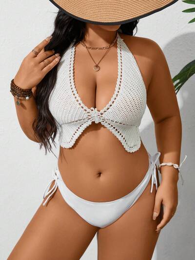 Summer Beach Plus Size Crochet Backless Cover Up For Beach Holiday, 1pc