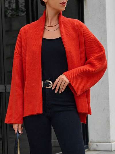 Waterfall Collar Drop Shoulder Belted Cardigan-60%