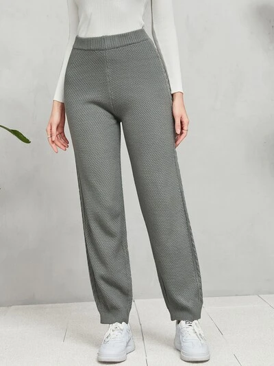 Self Belted Cardigan And Knit Pants Set 2 Piece Set Modest