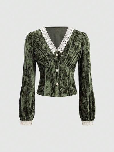 Women's Flower Jacquard Lace Patchwork Shirt Fall Cloth For Women-60%