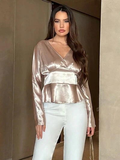 Solid Tie Front Satin Blouse