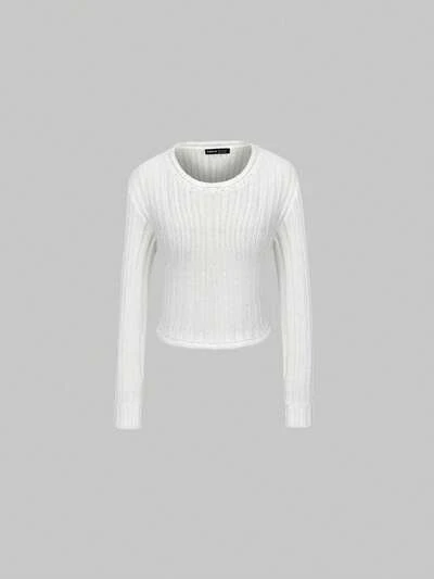 Eyelash Lace Trim Batwing Sleeve Sweater Winter White Casual