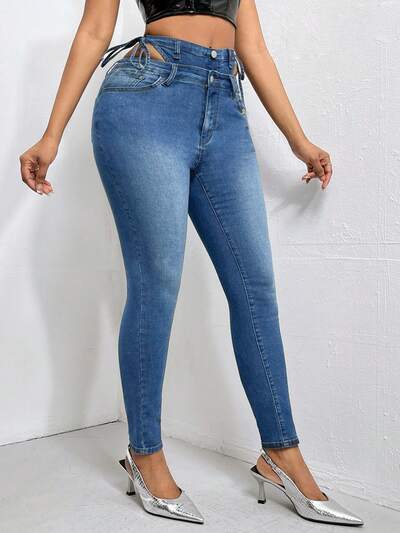 High Waist Knot Side Cut Out Skinny Jeans-60%